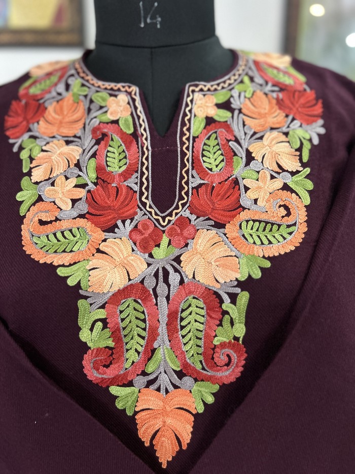 Elevate your winter wardrobe with this stunning Burgundy Cord Set. Merging the latest trend of coordinated styling with the timeless beauty of Kashmiri craftsmanship, this 2-piece outfit is perfect for any occasion where warmth and elegance are essential.